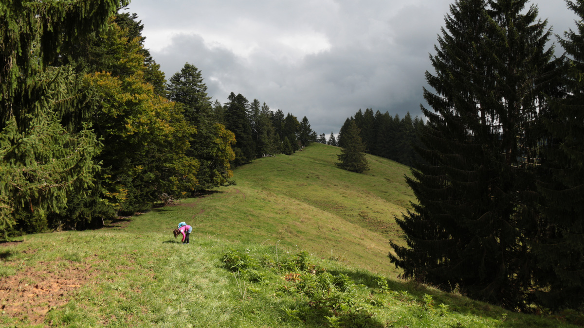 die letzten Aufstiegsmeter am breiten Rücken der Kalzhofner Höhe