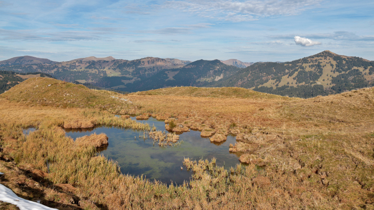 der kleine Moorsee am Gipfel des Piesenkopfs