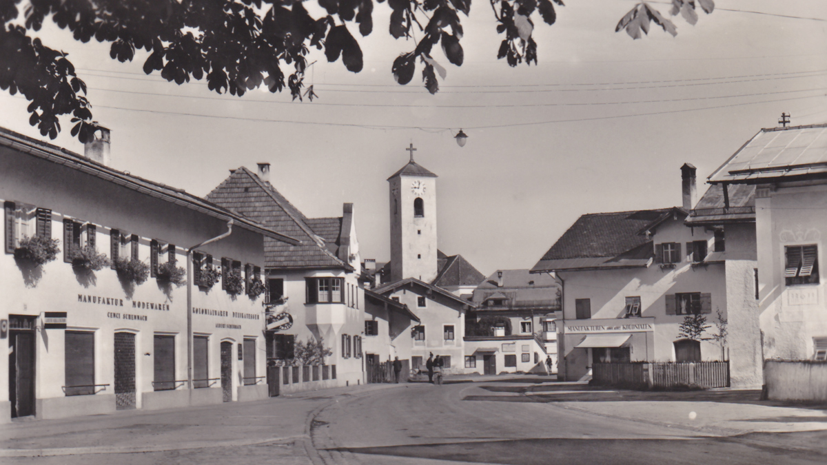 der Reuttener Obermarkt um etwa 1950 (Much Heiss, Alpiner Kunstverlag - Innsbruck)