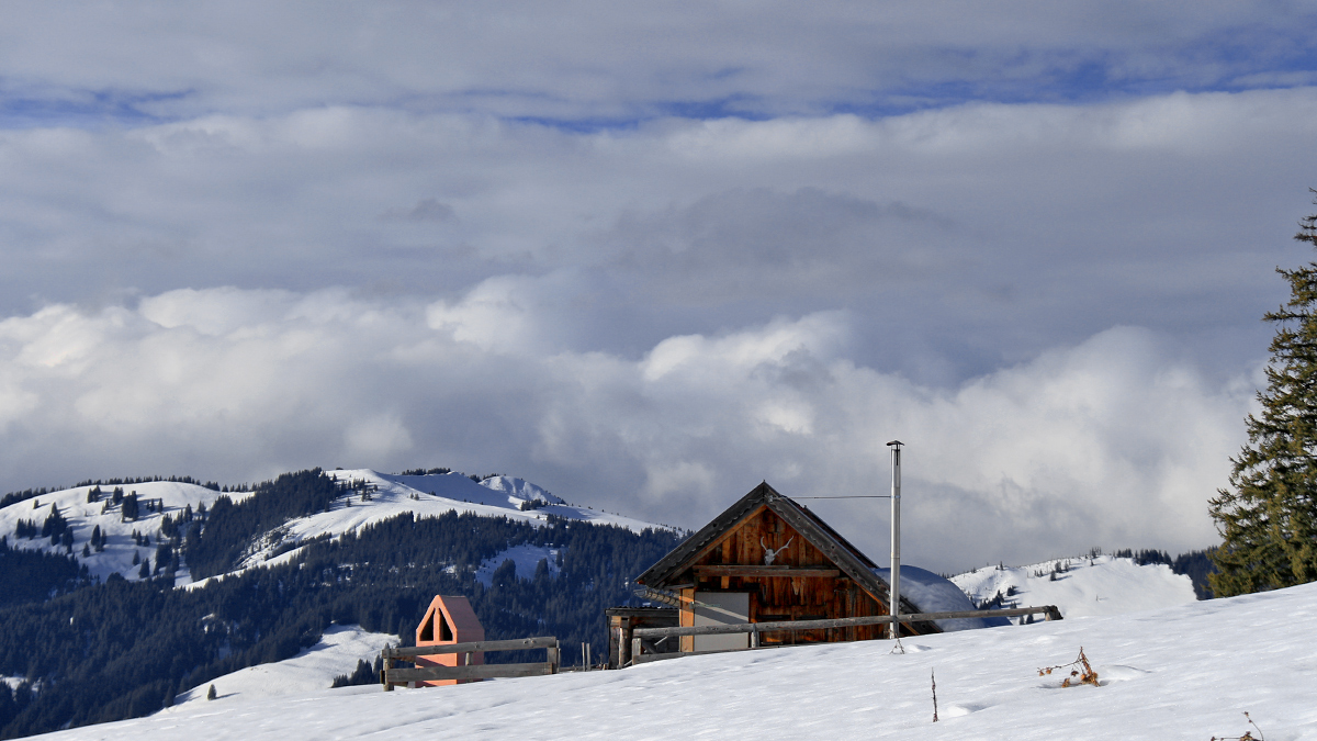 die kleine Jagdhütte am Wiesler Berg - im Hintergrund das Wertacher Hörnle