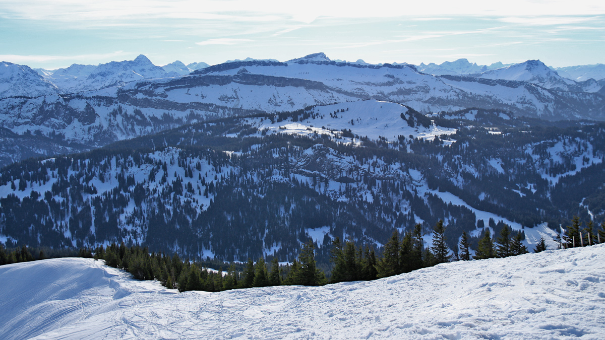 Ausblick vom Riedberger Horn hinüber zum Piesenkopf und den Gottesackerwänden