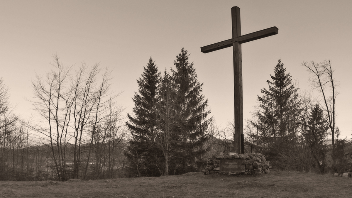 das Kreuz am Drachenköpfle am Weg zu den Ruinen Hohenfreyberg und Eisenberg