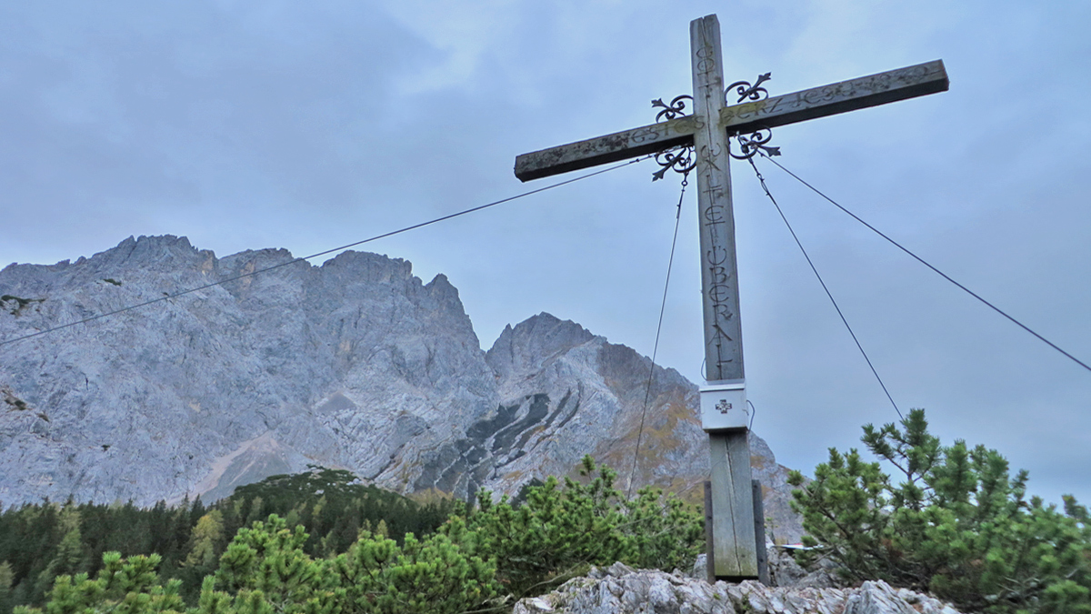 das Gipfelkreuz am Schachtkopf - im Hintergrund Wamperter Schrofen und Marienbergspitze