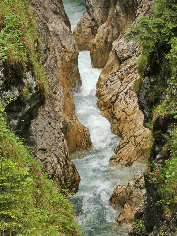 die Leutascher Ache hat sich über Jahrtausende tief eingegraben und bildet heute die Leutascher Klamm aus