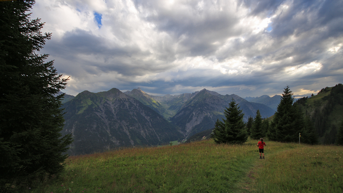 am Abstieg vom Bernhardseck über den Grünberg - im Hintergrund das Sulzltal bei Stockach