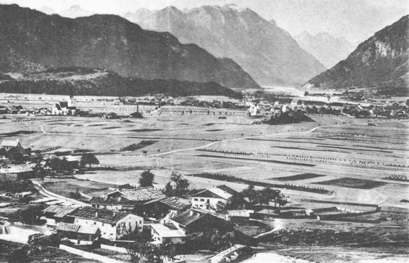 die Mühle am Archbach (Mühl) - im Hintergrund Breitenwang (li.) und Reutte