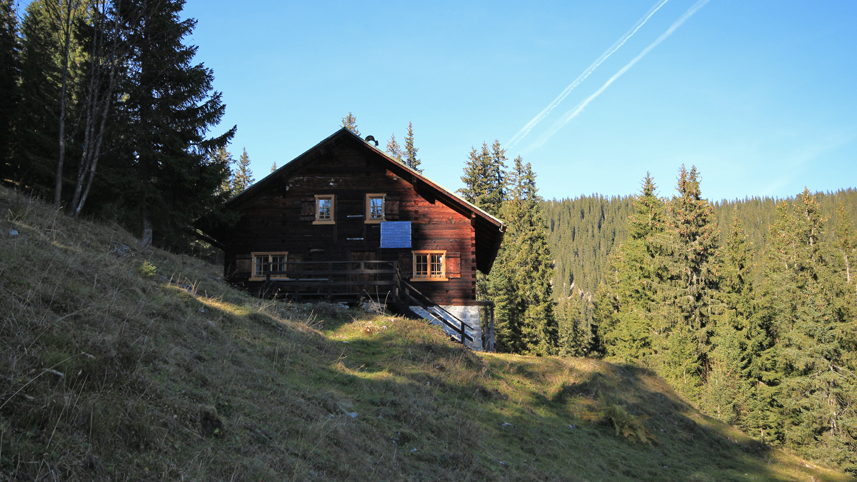 die Grafenkürenalpe am östlichen Rand des Oberen Gottesackerplateaus