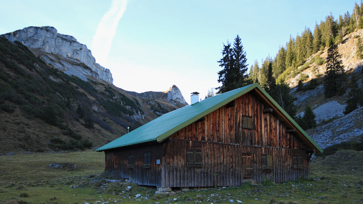 die Mahdtalalpe - im Hintergrund links die Oberen Gottesackerwände und links der Torkopf