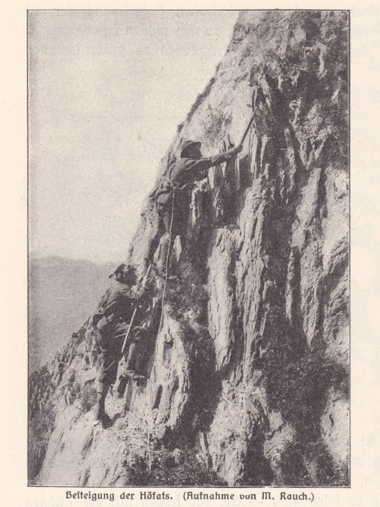 Besteigung der Höfats (um 1900, aus Allgäuer Alpen, Förderreuther; Fotografie von M. Rauch)