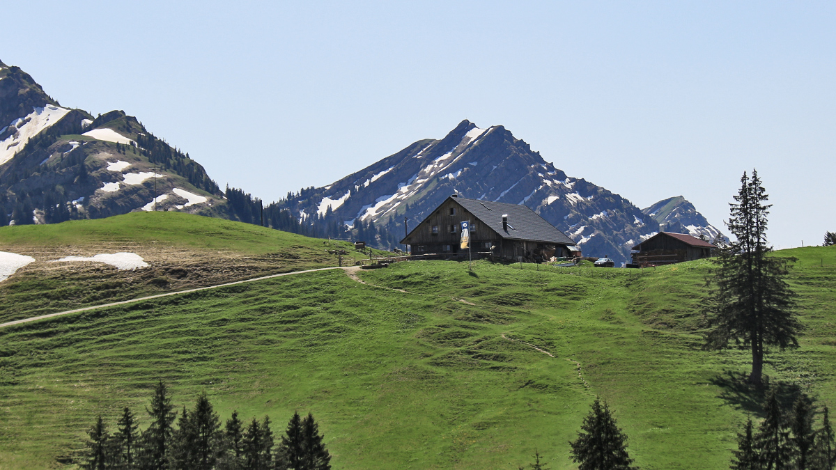 die Alpe Mittelberg vor dem markanten Rindalphorn