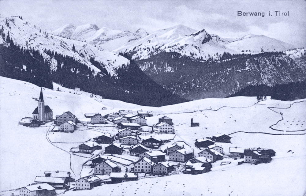 winterliches Berwang - im Hintergrund das Galtjoch (ca. 1920)