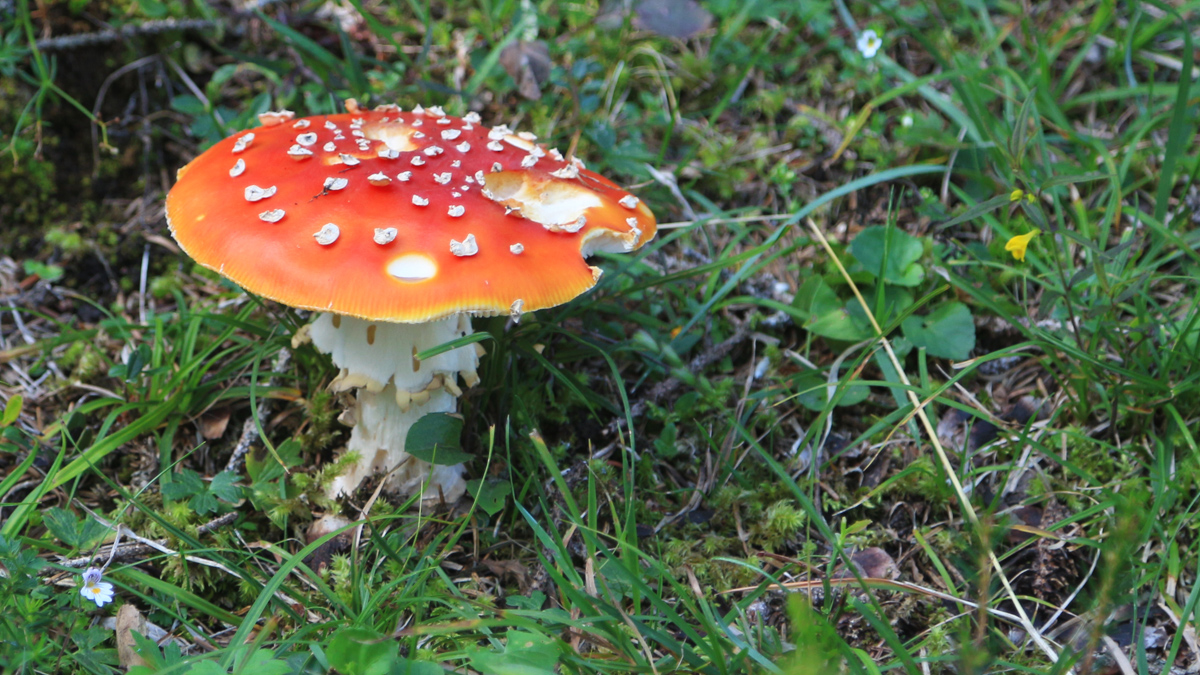 der Fliegenpilz (Amanita muscaria) ist ein Giftpilz und wird von August Heinrich Hoffmann von Fallersleben (1798-1874) in dem Lied 'Ein Männlein steht im Walde' literarisch aufgegriffen. So steht das Männchen auf einem Bein und trägt 'ein Purpur Mäntelein'