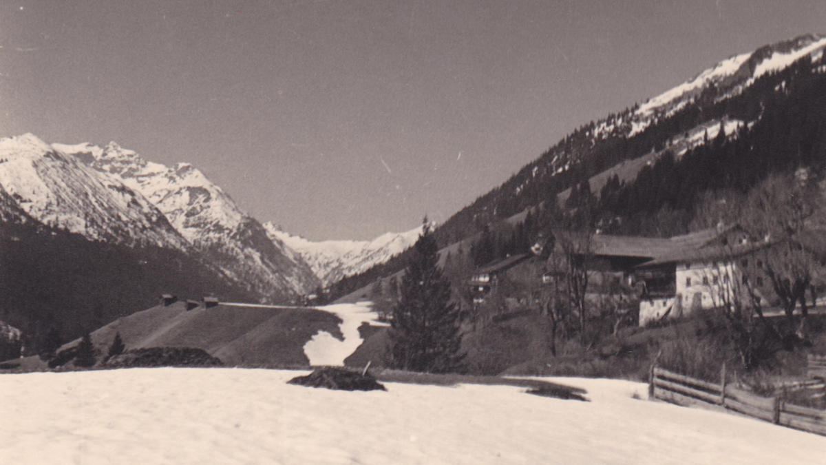 Ausblick von Rauth hinein in das Birkental und zu der Leilachspitze (1936)