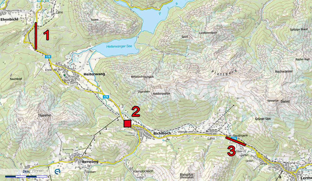 - Umfahrung beim Rautängerle (Rollenmühlsteig) (3) zwischen Bichlbach und Lermoos und die Verlängerung der Überholspur bergauf von Lermoos kommend zur Anhöhe der Wasserscheide bei Lähn (Bichlbach)