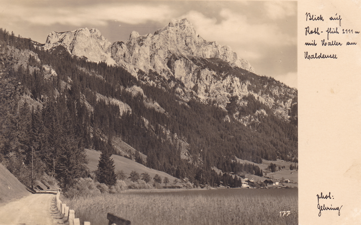 Blick auf Roth-Flüh 2111m mit Haller am Haldensee - Foto: A. Gehring (etwa 1950/60)