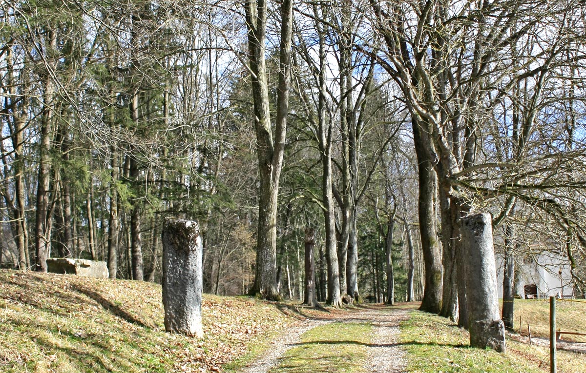In der Ebene unter der Felswand findet sich direkt neben dem mutmaßlichen Verlauf der Via Claudia auch eine längst überwachsene Einfriedung(?) in Rechteckform. Lange wurde diese für eine keltische Viereckschanze gehalten, jedoch haben dendrochronologische Untersuchungen eine zeitliche Zuordnung in das Mittelalter festgestellt. Allerdings, so wird auch vermutet, könnten ältere, darunterliegende Befunde auf eine römische Straßenstation, eine mansio, hindeuten.
