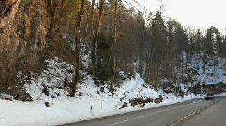 Im Bereich des Kniepasses soll früher laut einschlägiger Literatur eine etwa 100 Meter lange Geleisstrasse sichtbar gewesen sein. Eine erste Erkundung im Herbst 2015 brachte keine Ergebnisse bzw. Erkenntnisse über deren genauen Verlauf. Aus dem Werk von Walde und Grabherr "Via Claudia Augusta und Römerstraßenforschung im östlichen Alpenraum" konnte ich zwischenzeitlich aber entnehmen, dass dieser Abschnitt heute gar nicht mehr sichtbar ist. Eine weitere Erkundung im April 2018 brachte mich auf einen östlich der heutigen Fahrbahn befindlichen Hohlweg, welcher als Trasse durchgehend verfolgbar ist. Zwei als Lesefunde geborgene Hufeisen verweisen diesen Straßenverlauf jedoch in den Zeitraum des Mittelalters. Ob diese Wegführung bereits auf die römische Route zurückgeht, muss noch offen bleiben. Der historische Übergang am Felsriegel des heutigen Kniepass verlief in römischer Zeit knapp oberhalb der neuzeitlichen Straßentrasse, um am Abstieg nach Oberpinswang noch in das Auental ein zu schwenken.