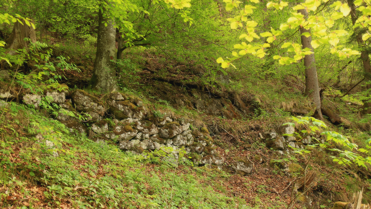 Einem Hinweis zufolge könnte es sich bei dieser Erhebung und dem Hohlweg aber auch um Reste der einstigen Eisenverhüttung aus mittelalterlicher Zeit handeln?