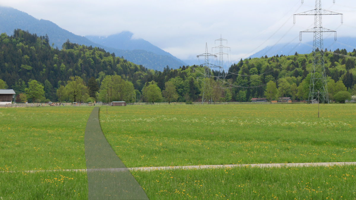 In seiner Verlängerung führt diese Rampe heute als Wanderweg nämlich durch die Nordwestflanke unterhalb der Rotwand und über dem Kraftwerksgebäude in leichtem Gefälle bis zum Füssener Stadtteil Ziegelwies hinaus. Das Teilstück zwischen dem Weißhaus und der Geländekante südwestlich von Ziegelwies wird heute zwar nicht mehr als Wanderpfad genutzt und zeigt sich großteils schon überwachsen, eine Art Wegtrasse ist dort unter den Felsfluhen aber dennoch sichtbar.