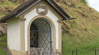 Als weiteres, natürliches Hindernis stellte sich bei Unterpinswang der Kratzer bzw. der Stiglberg in den Weg. Eine wegähnliche Trasse führt direkt unter den Felsen des Burgschrofens in den Sattel zwischen die zuvor genannten Erhebungen. Am Anstieg selbst steht an die Felswand gelehnt ein Wegkreuz mit antiker Standsäule. Peresson sieht in dieser einen "ausreichenden Beweis dafür, dass zur Zeit ihrer Entstehung der Verkehr [bereits] über den Pass lief."