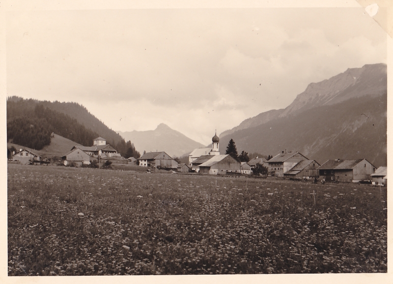 Blick über Grän gegen Osten zum Gipfel der Gaichtspitze
