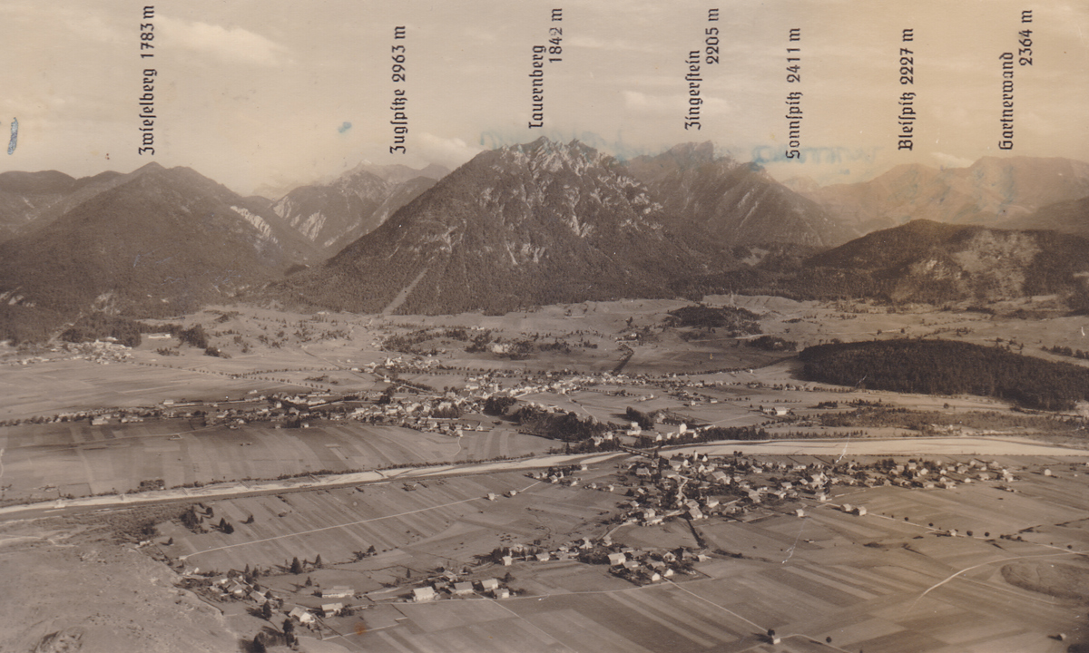 Blick auf Lechaschau und Reutte aus der Vogelperspektive - Verlag Kohlbauer (gelaufen 1941)