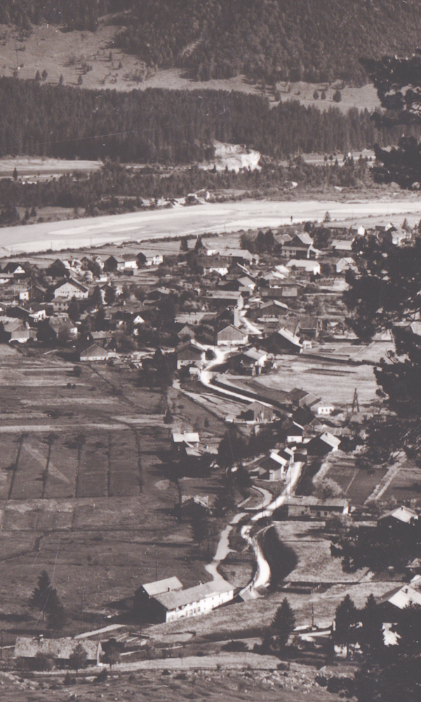 Blick hinab nach Lechaschau - Unterdorf im Vordergrund - Verlag A. Kohlbauer (etwa 1940er Jahre)