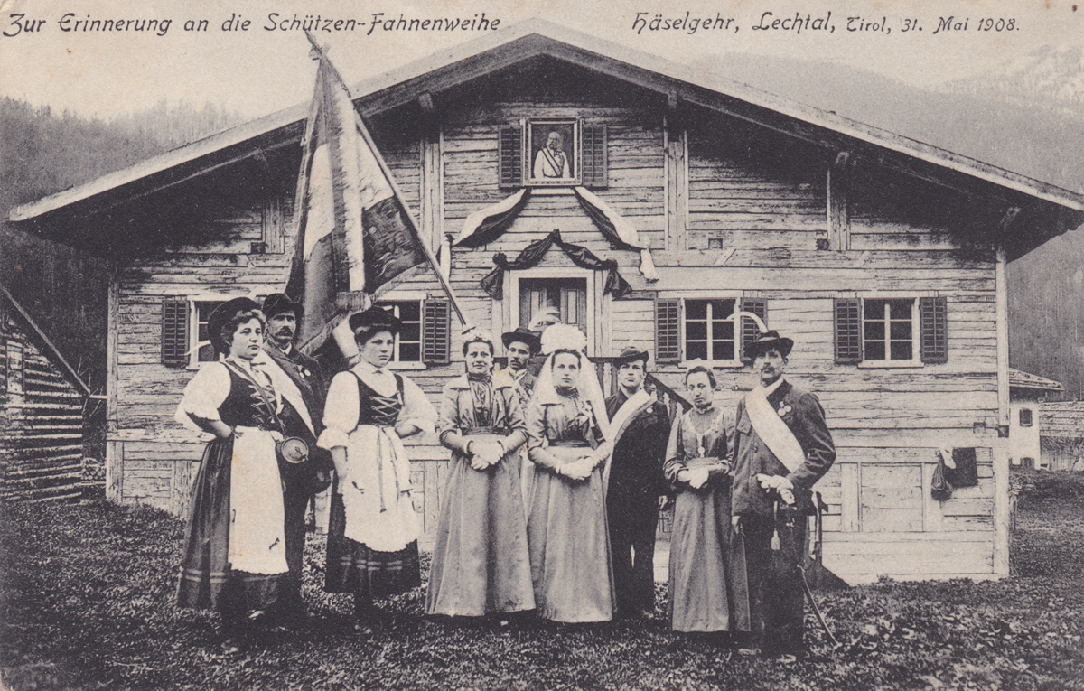 Zur Erinnerung an die Schützen-Fahnenweihe - Häselgehr am 31. Mai 1908 - Foto J. Heimhuber