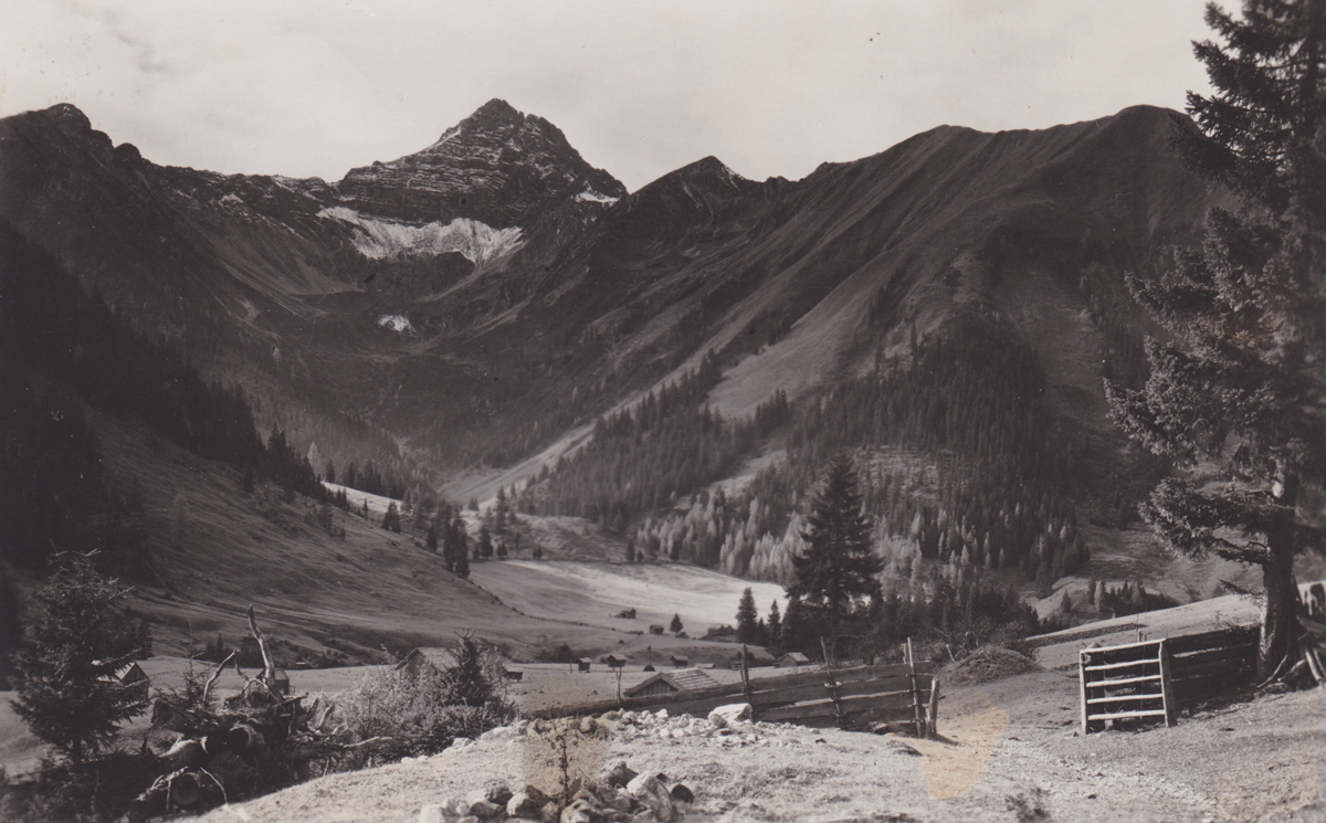 Blick auf die Namloser Wetterspitze auf dem Weg von Kelmen nach Namlos - Foto Richard Müller - Karte gelaufen 1935