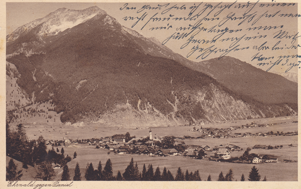 Ausblick über Ehrwald hin zum Daniel - Kunstverlag Wilhelm Stempfle - Karte gelaufen 1928