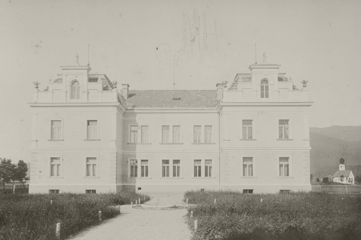 Lehrmittel-Ausstellung der Volksschule Reutte 1898 - Schulgebäude