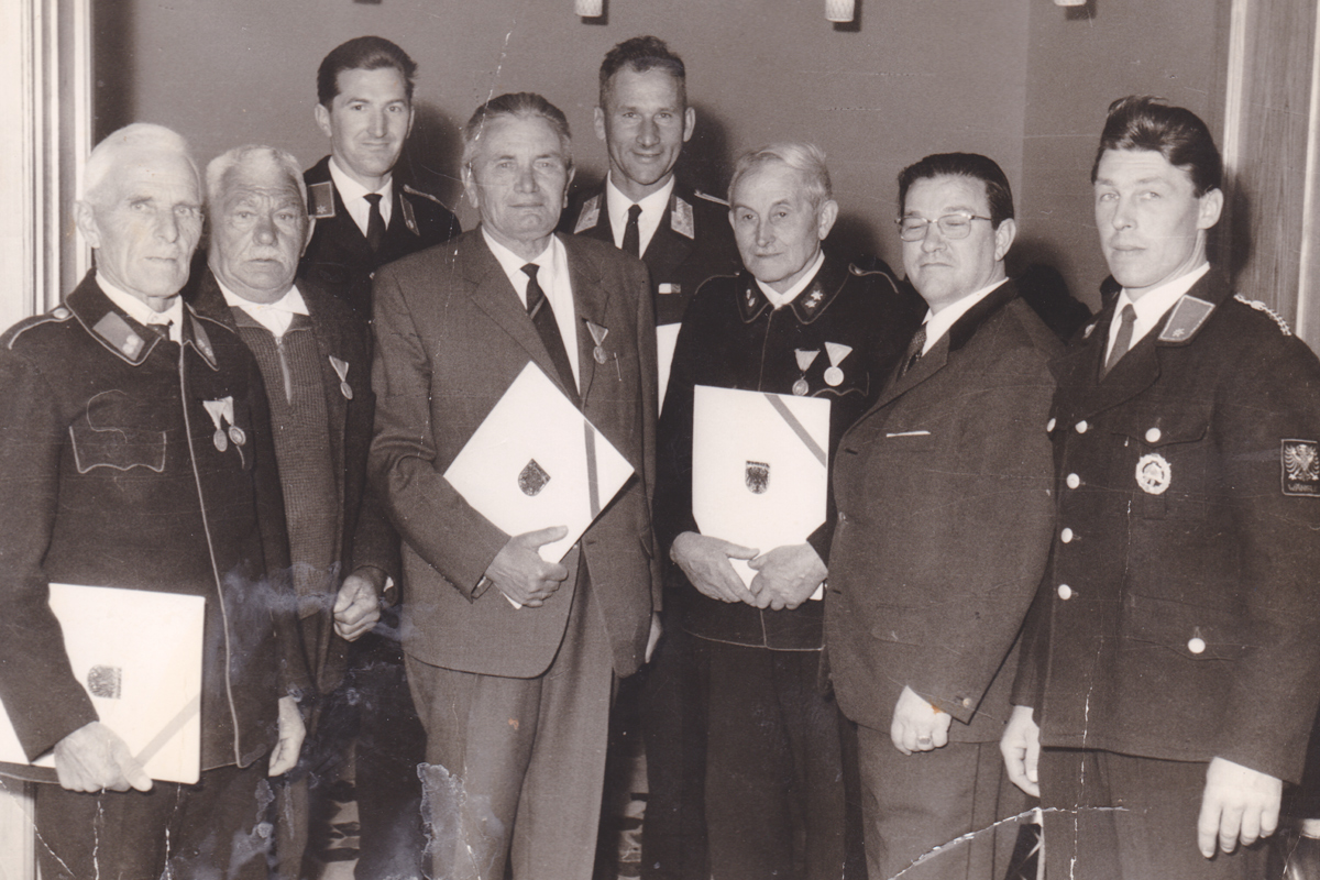 Ehrung der Mitglieder der Freiwilligen Feuerwehr Wängle - etwa 1960er Jahre