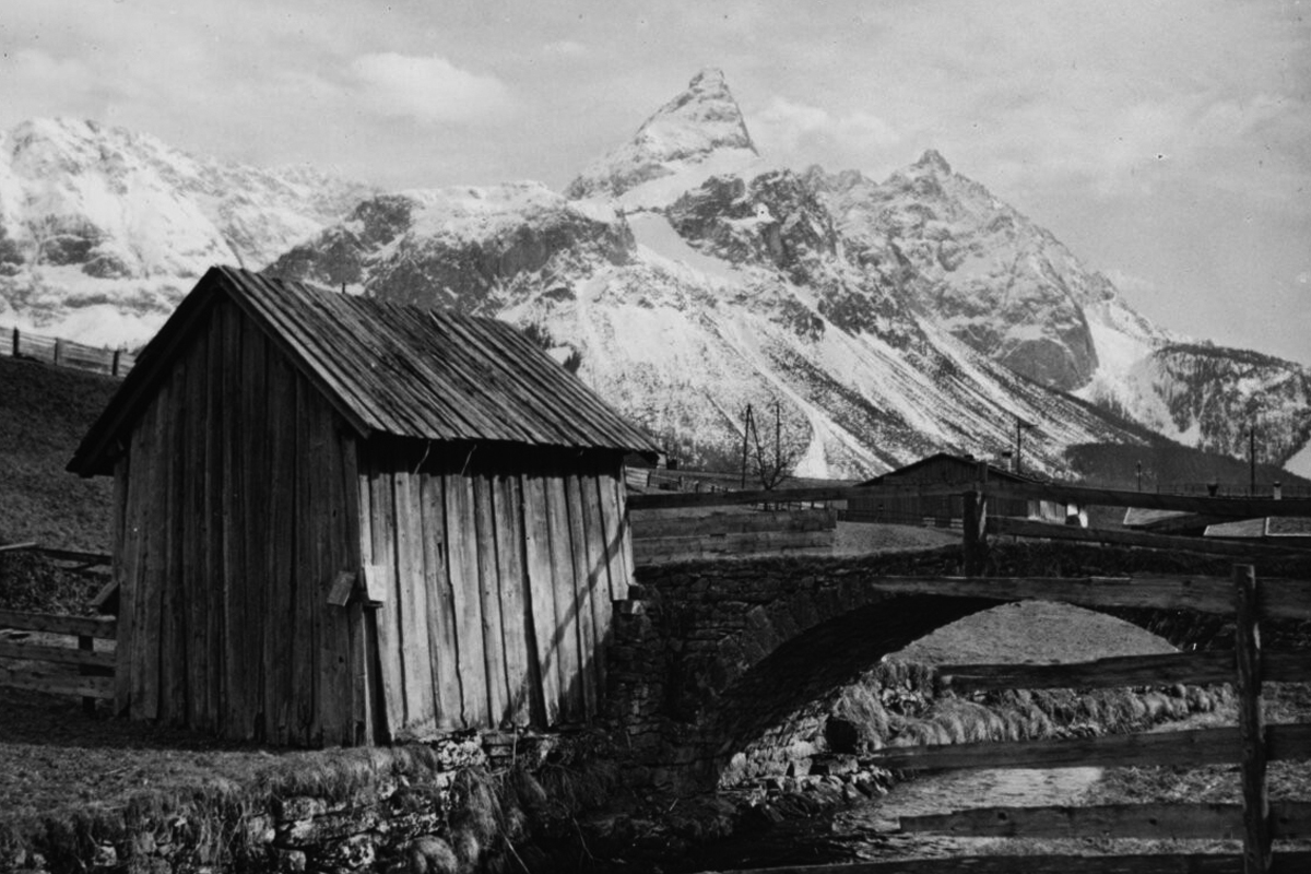 die alte Brücke bei der Mühle an der Loisach (Ehrwald) - Foto: Sammlung Norbert Bertolini, Vorarlberger Landesbibliothek - 1933