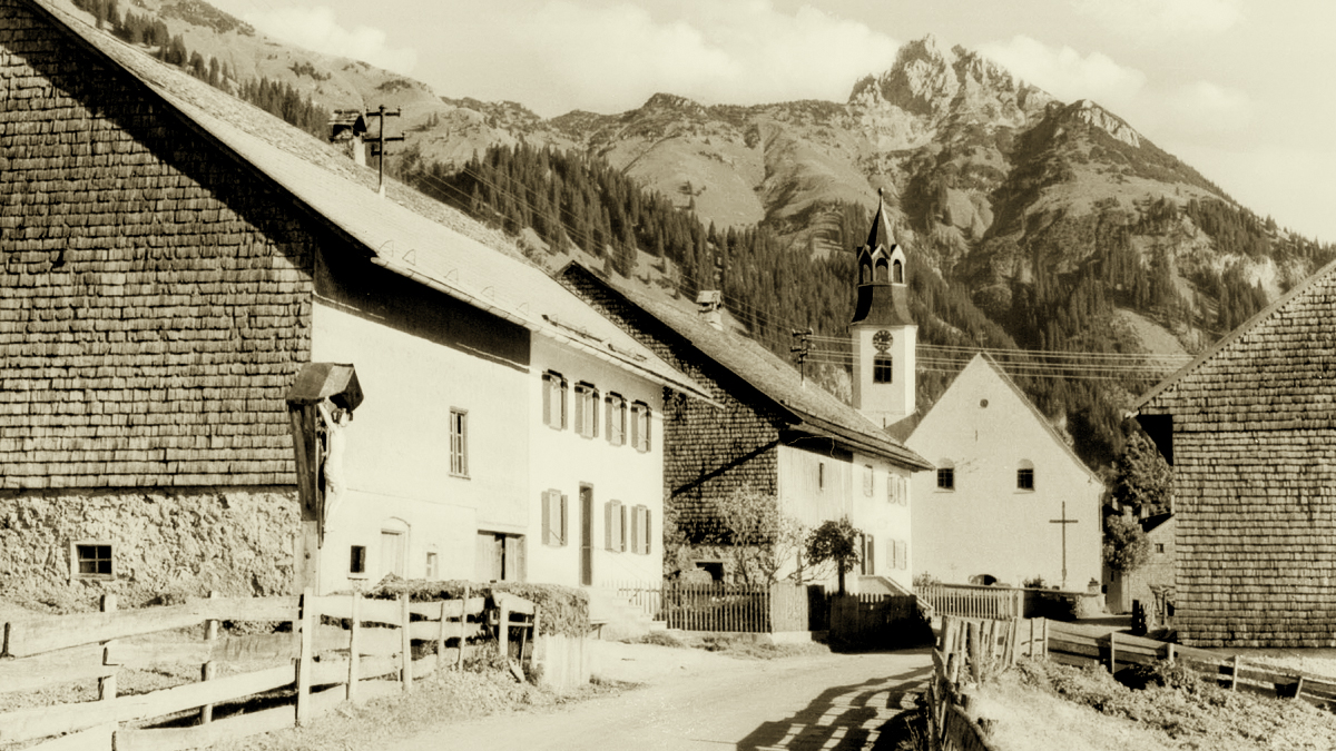 die Dorfstraße von Nesselwängle - Foto: Sammlung Risch-Lau (Kohlbauer), Vorarlberger Landesbibliothek