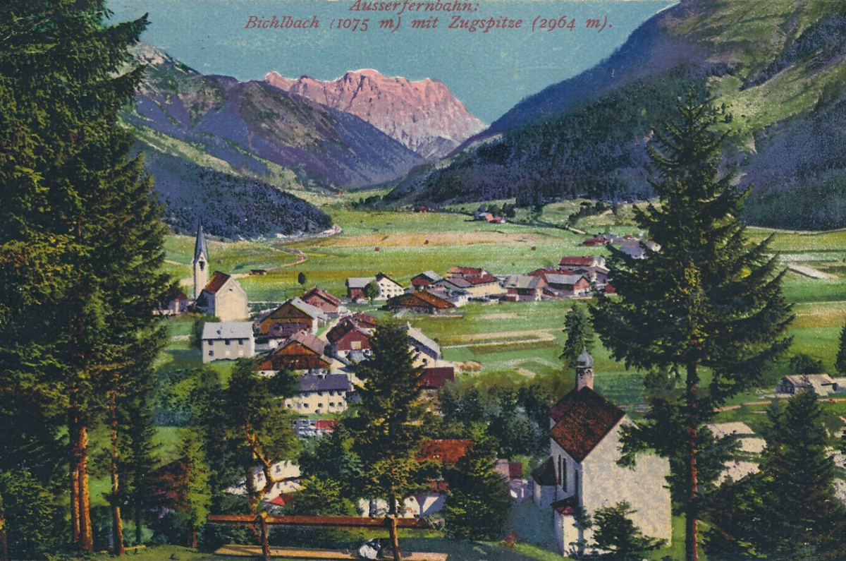 Bichlbach (1075 m) mit Zugspitze (2964 m) - etwa 1920er