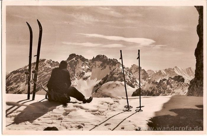 Rast an der Balkenscharte mit Blick auf die gegenüberliegende Rosskargruppe um ca. 1930