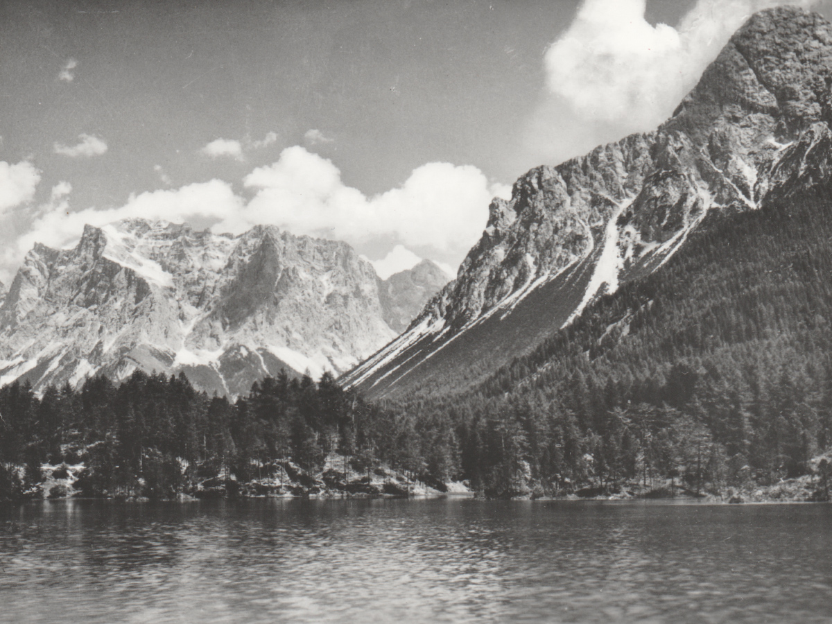 Weissensee mit Zugspitze u. Sonnenspitze - aus der Serie 'Österreichische Alpenbilder' - 'Monopol'-Verlag Schöllhorn - etwa Ende 1940er Jahre