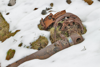 Propeller der B24 Liberator, welche etwa 200 m nördlich der Lermooser Kirche in das Moos stürzte