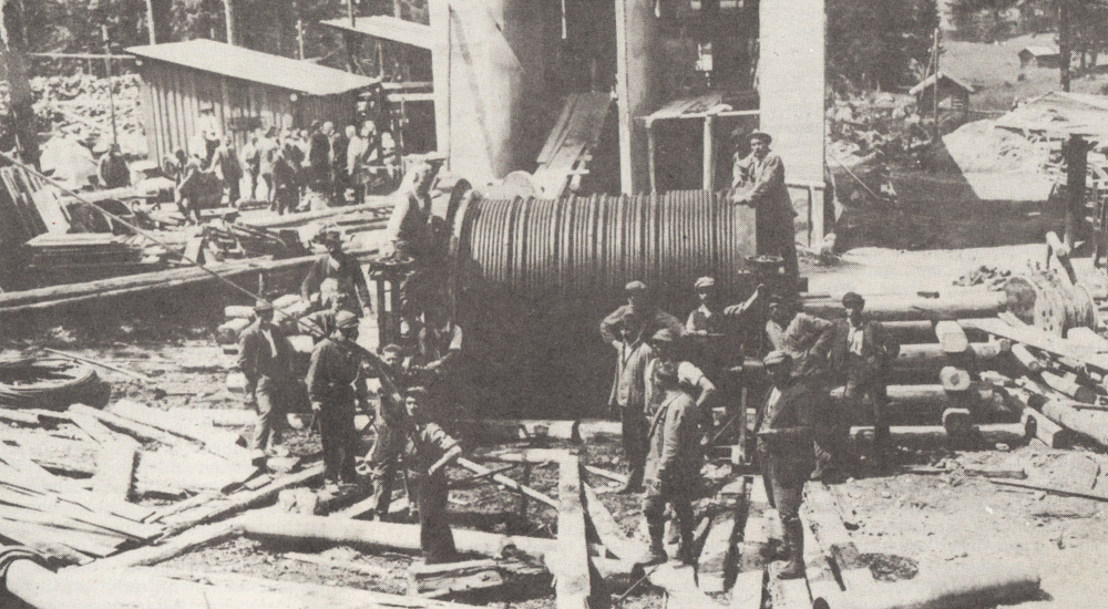 beim Aufziehen des Tragseils der Zugspitzbahn 1926