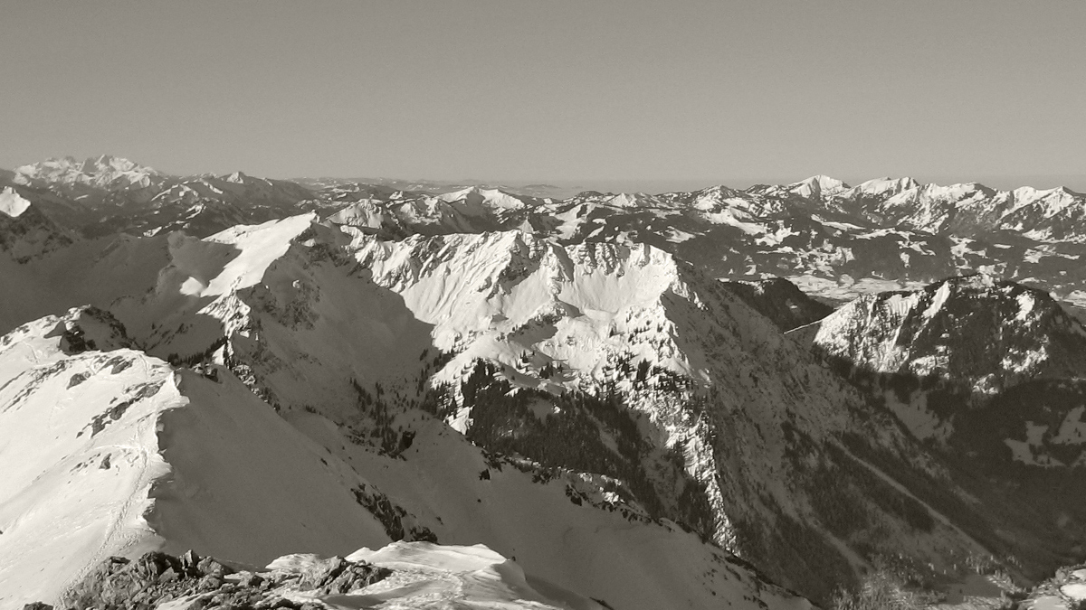 die winterliche Ostflanke des Breitenbergs bei Hinterstein (Bildmitte)
