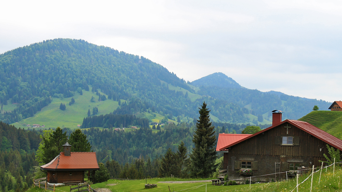 Blick von Buchenegg (Turaalpe) gegen Südwesten zum Imbergkamm (li.) und der Fluh