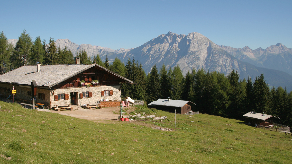 die Oberhofer Melkalm mit der Hohen Munde im Hintergrund