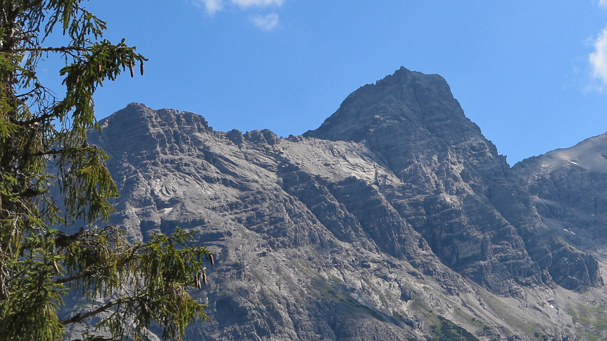 Ausblick auf die Zwölfer- (li.) und Urbeleskarspitze