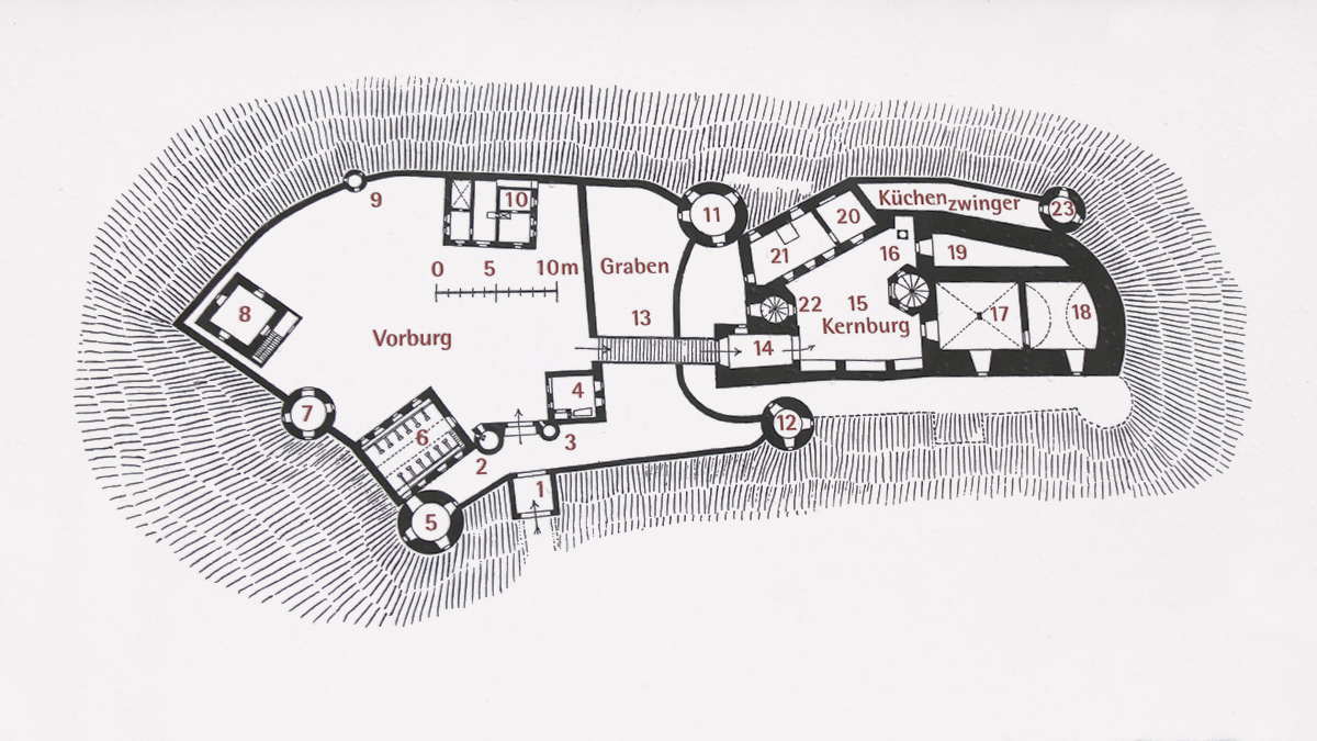 Zahlreiche archäologische Funde aus dem Umfeld der Burg bezeugen einen vornehmen, aufwendigen Haushalt. Unter anderem fanden sich herrliche Ofenkacheln, venezianisches Glas, unterschiedliche Keramiken, sehr viel Butzenglas und reich ornamentierte Tür- und Truhenbeschläge.