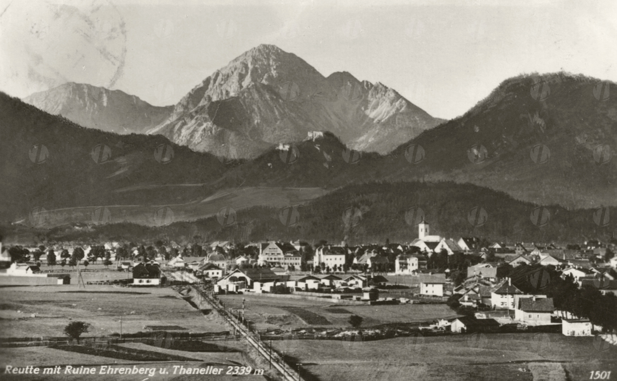 Reutte mit Ruine Ehrenberg und Thaneller - Foto: G. Bischofberger - gel. 1930