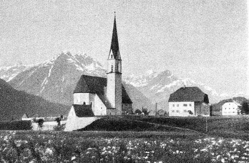 die Pfarrkirche von Elbigenalp im Frühjahr 1903