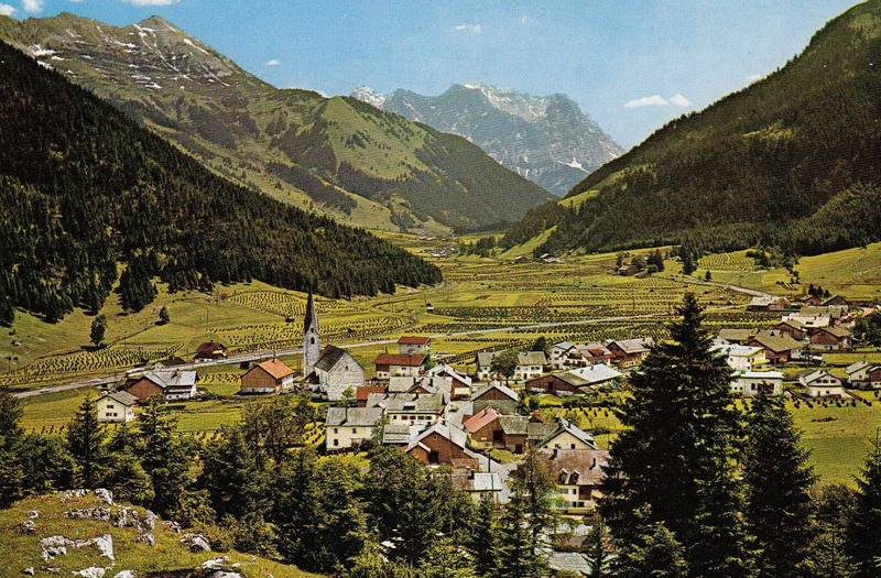 Blick von West nach Ost über den Ort Bichlbach und seine heinzenbestandenen Felder - Foto: Franz Milz Verlag (Ende 1970er)