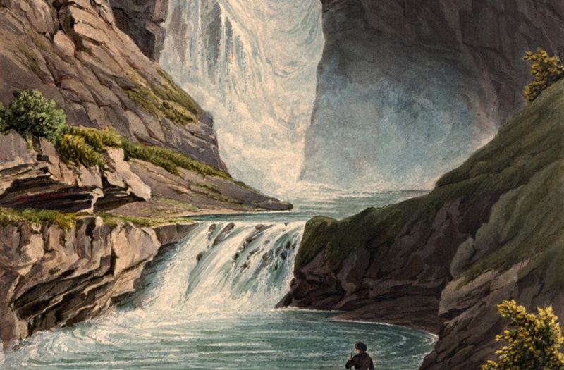 Ausschnitt aus einer Ansicht des Stuibenfalls, wie er sich noch im 19. Jahrhundert darstellte