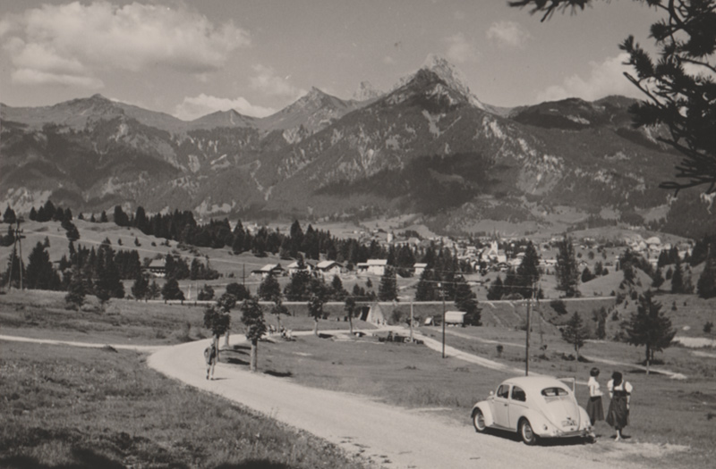 Pause bei der Fahrt vom Roßrücken hinab nach Breitenwang und Reutte - Foto: L. Reiter (vmtl. Ende 1950er)