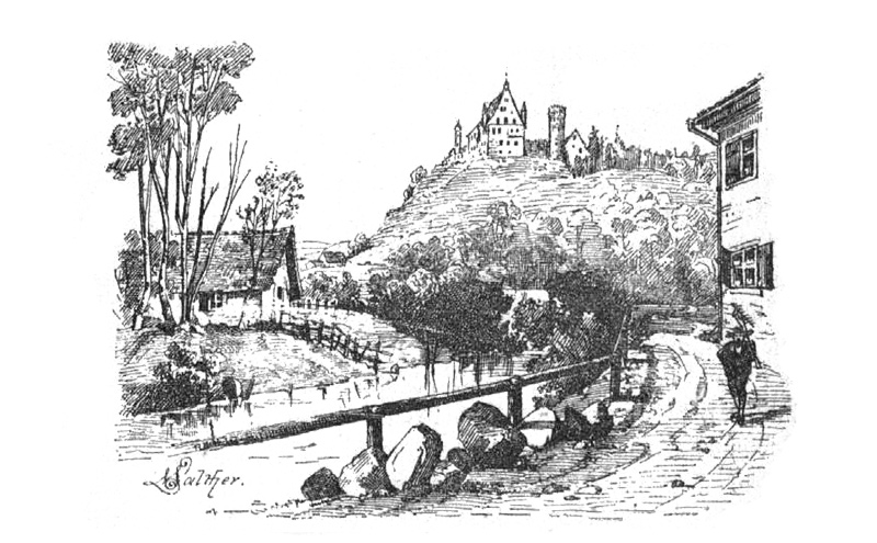 Zeichnung der Mindelburg - aus dem Werk 'Geschichte des Allgäus' von Franz Ludwig Baumann (1883)